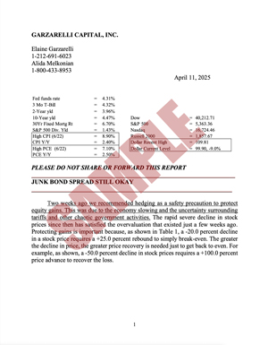 About every week Elaine Garzarelli will report her forecasts in this online publication (along with other updates). She will recommend which sectors and ETFs to invest in, and she will predict the direction of the stock market. In addition, the issues will contain Elaine's analysis of current economic events.
